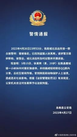 安徽警方通报后 拍摄并分享虐猫视频的男子公开致歉