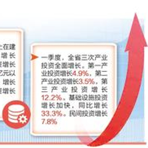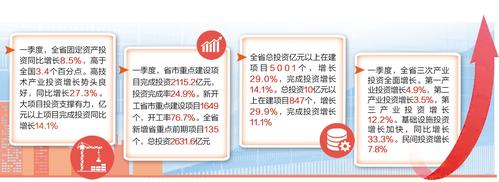 一季度,全省三次产业投资全面增长。第一产业投资增长4.9%,第二产业投资增长3.5%,第三产业投资增长12.2%。基础设施投资增长加快,同比增长33.3%。民间投资增长7.8%。