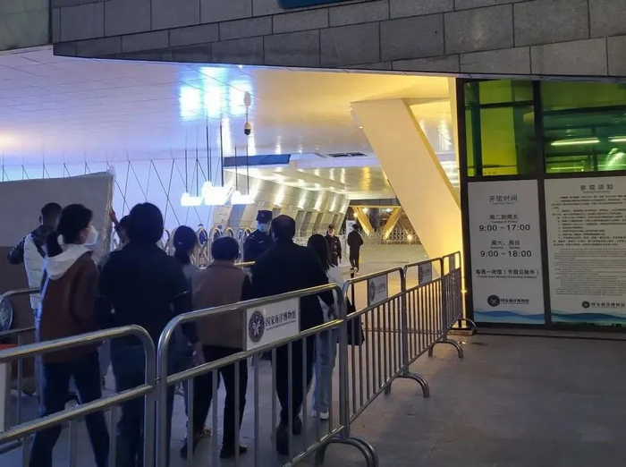 为了更好满足广大观众的节日文化需求,国家海洋博物馆推出夜间开放日,将闭馆的时间延迟至晚上21:00。4月28日,国家海洋博物馆迎来夜间开放首日,当天2万门票全部约满,不少观众还特别选在傍晚时分入馆。