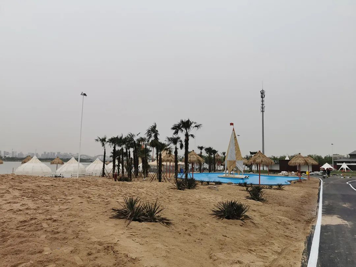北塘北文旅小镇负责人杨小伟介绍道:“除了北塘大风车乐园,我们还在北塘北文旅小镇内打造具有加州西海岸风格的‘美学营地’,我们从南方移栽了近两百棵棕榈树,同时利用环湖场地创建灯塔、泳池、美式复古集装箱等多个打卡拍照场景。此外,北塘北文旅小镇还有配套酒店为游客提供住宿服务。”