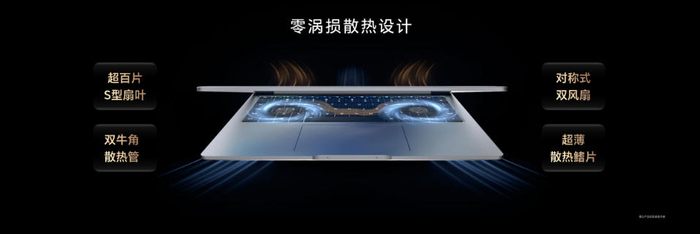 荣耀MagicBook 14系列2023拥有超百片S型超薄扇叶,搭配φ6+φ8双牛角散热管及超薄散热鳍片,在“零涡损”散热设计助力下,以及荣耀自研的系统级性能和功耗优化引擎OS Turbo 2.0技术加持下,整机最大性能释放可达70W。