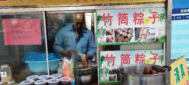 西北角的一家小吃摊,虽然显眼的地方写的是竹筒粽子,但这家摊子最出名的是炸卷圈。