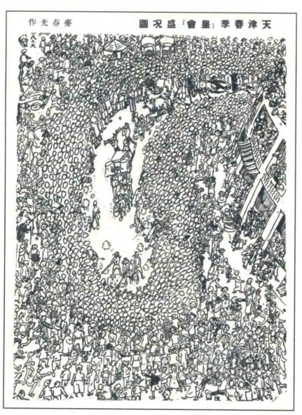 天津天后宫皇会盛况,出自《中国漫画》1936年第6期。