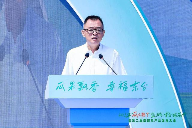 本次活动以“瓜果飘香,幸福东台”为主题,来自江苏省、盐城市、东台市的相关领导、国家西甜瓜产业体系专家及省内外西甜瓜领域经销商、省市新闻媒体记者等共计160余人参加了此次开幕式。开幕式由东台市人民政府袁聪副市长主持。开幕式上,东台市人民政府缪斌副市长、国家西甜瓜产业技术体系首席科学家许勇研究员、江苏省农业农村厅一级巡视员唐明珍分别致辞,盐城市西甜瓜产业发展促进会会长许鹏随后在现场对东台西瓜进行了推介宣传。活动以瓜为媒,以节会友,旨在搭建一座宣传品牌、拓展市场、深化合作的平台。