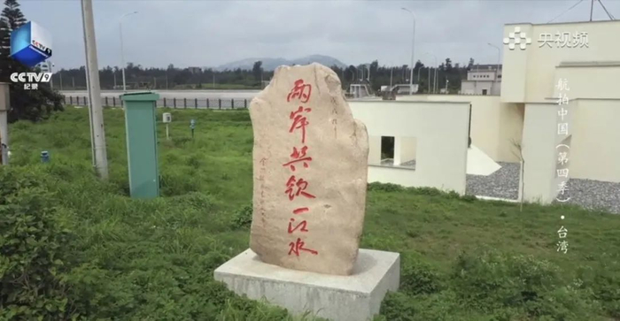 高空远望的视角与地面“两岸共饮一江水”的石碑两相呼应,勾勒出金门与大陆的守望相助。