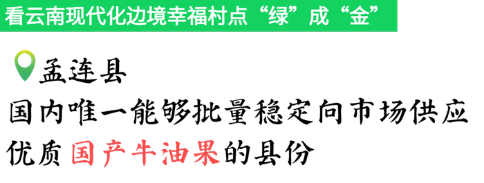 如今,一颗颗绿油油的牛油果不仅是当地老百姓增收致富的“黄金果”,更是现代化边境幸福村建设的丰硕成果。