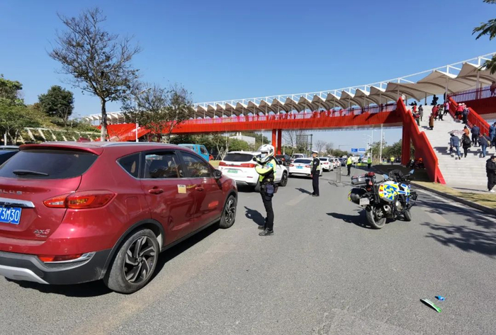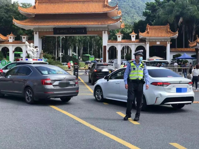 假期期间,交警将加强马峦路、比亚迪路的交通巡逻,根据园区的游客饱和状态,及时进行交通管制。