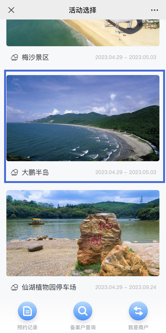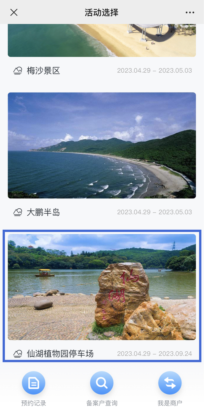 市民游客可通过“美丽深圳”微信公众号“便民服务”栏目中的“公园预约停车”进行预约,最长可提前2小时预约。