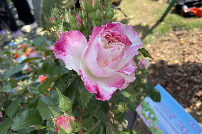 现场,辰山自育的月季新品种“辰山欢颜”露出真容,粉白相间,条纹色彩优雅。这是辰山植物园耗时7年研发的新品种月季,具有自主知识产权。