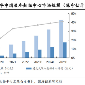 国海证券分析师李永磊等4月11日研报指出,人工智能技术的迅猛发展,极大增加了相关产业对高性能算力的需求,而在高性能算力的背后,对设备散热冷却提出了更高的要求。根据《中国液冷数据中心发展白皮书》数据,保守估计2025年中国液冷数据中心市场规模1283.2亿元,其中浸没式液冷市场占526.1亿元,占比将超过40%。