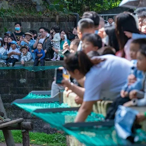 动物园人气爆棚,“熊猫热”持续火热。园区里“熊猫天团”是两对双胞胎大熊猫,它们的名字“双双”“重重”和“喜喜”“庆庆”寓意为“双重喜庆”,被网友们亲切地称呼为“四喜丸子”。可可爱爱地围坐一桌剥笋笋吃果果是它们的名场面。