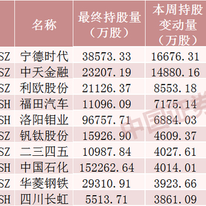本周北向资金持股增加数前十个股