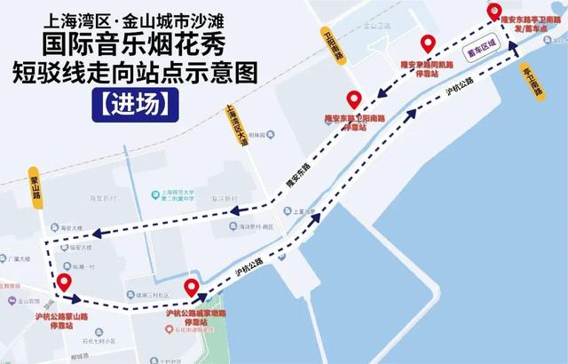 路线二:S19高速——金山卫出口——新卫公路——金山大道——杭州湾大道——金山城市沙滩