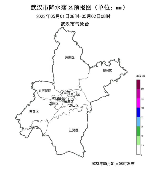 预计5月2-4日,受高空低槽和中低层切变线共同影响,武汉市有一次暴雨天气过程,并伴有适时强降水和雷电大风等强对流天气。6日,受高空波动东移影响,武汉市又有一次降水过程。此外,4日夜间-7日,受冷空气南下影响,武汉市北风增强。