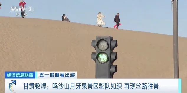 这个红绿灯上的图案是“骆驼”,是专门为骆驼设置的。绿骆驼灯亮骆驼行,红骆驼灯亮骆驼停。