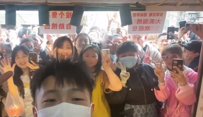 4月30日,山东淄博一小哥的鸭头店开门营业时被热情吓退,他一看全是人后赶紧关门,表示“现在有点紧张,外面人好多”。随后门再次被保安大哥拉开,开始营业。