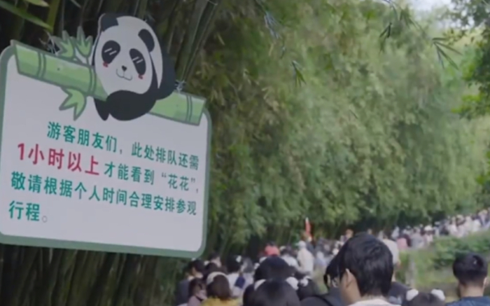 4月30日,游客为看花花排队2小时,只看3分钟的事情引发网友关注,四川成都五一假期人潮涌动,成都大熊猫繁育研究基地里人山人海,挤满了来看熊猫的游客,队伍从园区内一直排到园区大门外。