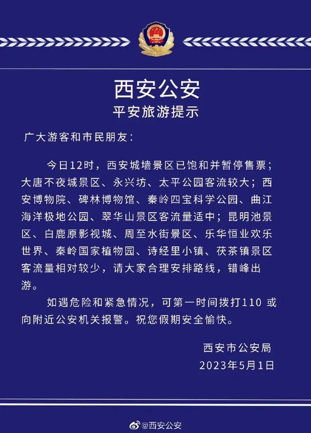 那目前西安各景区最新情况如何呢?5月1日,西安公安发布西安各景区情况实时播报,具体内容如下↓↓↓