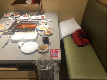另一桌的蒋同学(化名)在武汉某高校读大三,“夜宿海底捞”是因为学校有门禁时间,此前看过不少人在小红书上的攻略分享,所以选择来海底捞通宵。另外,马上要为考研做准备了,因此蒋同学想不如借此机会 “疯狂”一次,打卡“去看自己喜欢的歌手的演唱会,并在海底捞和同学一起通宵等看日出”的经历。