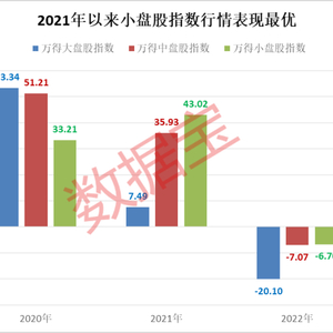 以2021年以来的年度行情表现来看,万得小盘股指数持续优于大盘股指数和中盘股指数。今年以来,在中字头板块频频走高的背景下,小盘股仍以7.67%的上涨幅度跑赢大盘股指数0.7个百分点。近年来我国增加中小企业发展扶持力度,政策面的利好催化 A 股中小市值公司和小盘风格的表现。