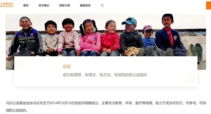 公开资料显示,马云于2014年创立马云基金会,致力于支持教育、创业和生态环境保护等领域。