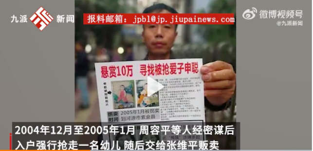 18年前,人贩周荣平等人在密谋之后,冲进申军良的家,强行在申军良妻子的眼皮子底下,将1岁的儿子抢走。