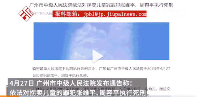 4月27日,人贩子张维平、周容平,被执行死刑。