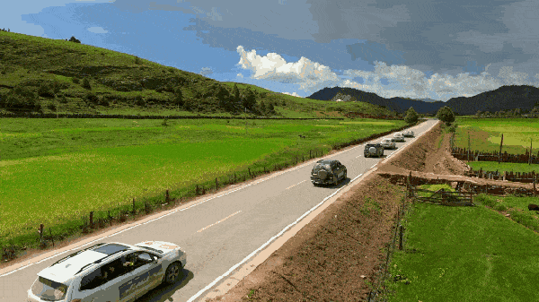 车辆整齐列阵,有序出发。冯兆宇 摄