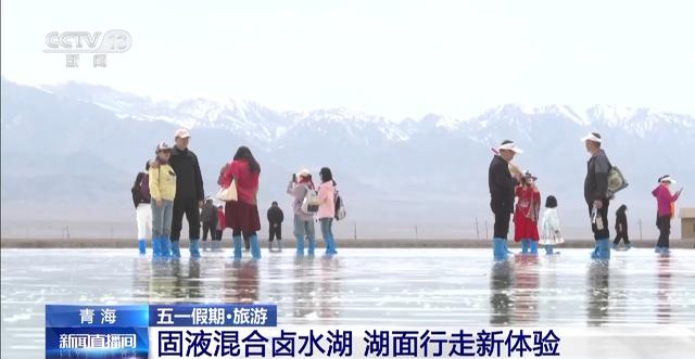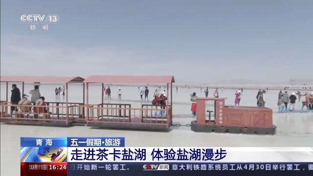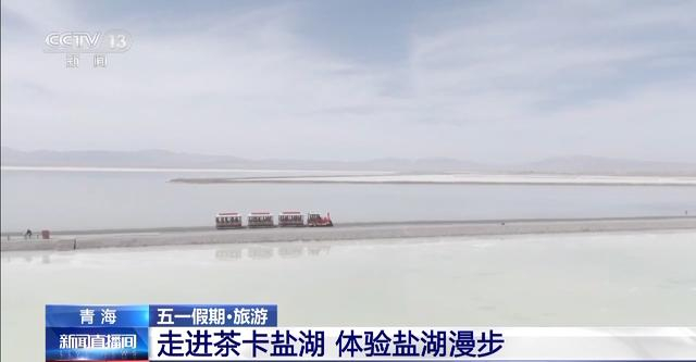 盐湖四周群山环绕,雪山倒映在镜子般的湖面上,游客在湖面中行走,也宛如云端漫步。这些独特的美景吸引着不少游客打卡拍照,今年五一期间,来到茶卡盐湖的游客数量十分庞大。此外,景区利用得天独厚的自然优势打造了别具特色的星空帐篷,住在这里帐篷里,夜晚向外看,就可以看到盐湖倒映着繁星的美景。景区工作人员介绍,茶卡盐湖两大景区总面积达44.19平方千米,游客们进入景区大门后可以选择乘坐小火车直接进入盐湖深处,也可以漫步在盐湖栈道上,欣赏沿途风光。
