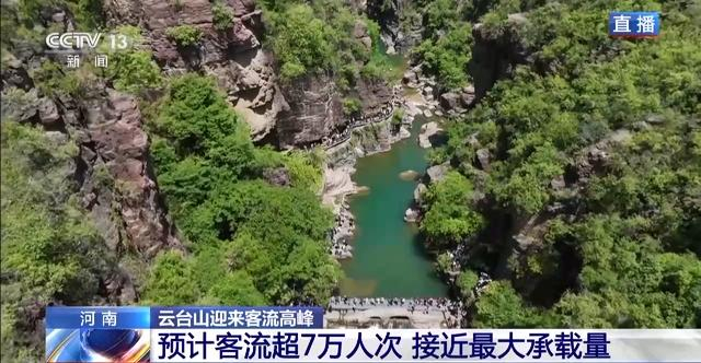 总台记者 王涛:根据预售票的情况,今天云台山景区内的游客预计会超过7万人次,接近最大承载能力8万人次,所以已经采取了限流措施。