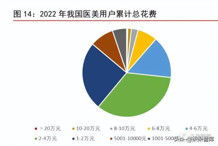 我国医美用户年消费多集中在 1-6 万元,医美消费水平较高。根据艾瑞咨询调研数据, 2022 年我国医美用户的年累计医美消费超过 1 万元的比例高达 86.3%;其中,年消费 1-2 万、2-4 万、4-6 万的客户占比分别为 25.2%、34.3%和 15.4%,年消费在 2-4 万之间的 医美客户占比最高。分项目来看,艾瑞咨询调研显示,2022 年,我国医美用户在手术类 医美项目、注射类项目、光电类项目的平均年消费分别为 15,040 万元、11,190 万元和 10,485 万元。虽然部分注射类、光电类医美项目单价较低,但维持时间较短使得复购率 较高,其中注射类项重复消费频率更高。在疫情为常态的背景下,我国医美用户消费仍 处于较高水平;随着疫情影响褪去,国人消费逐步复常,医美用户积压的医美需求也将 逐步释放。我们认为,未来几年,我国医美渗透率和消费水平有望齐齐上升。