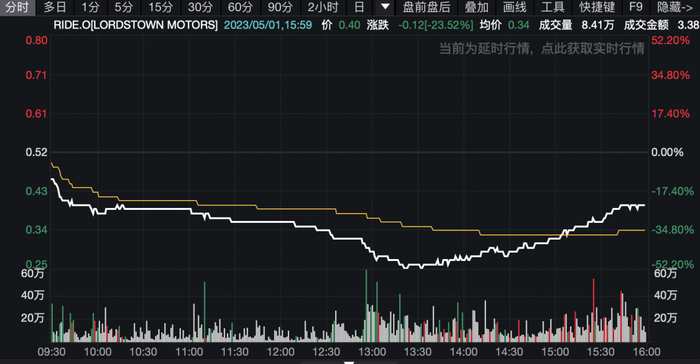 电动汽车制造商Lordstown Motors盘中股价腰斩,收盘仍跌超23%。