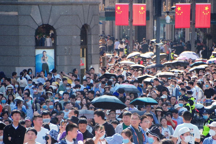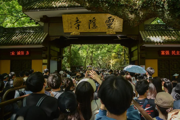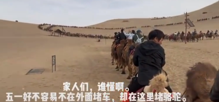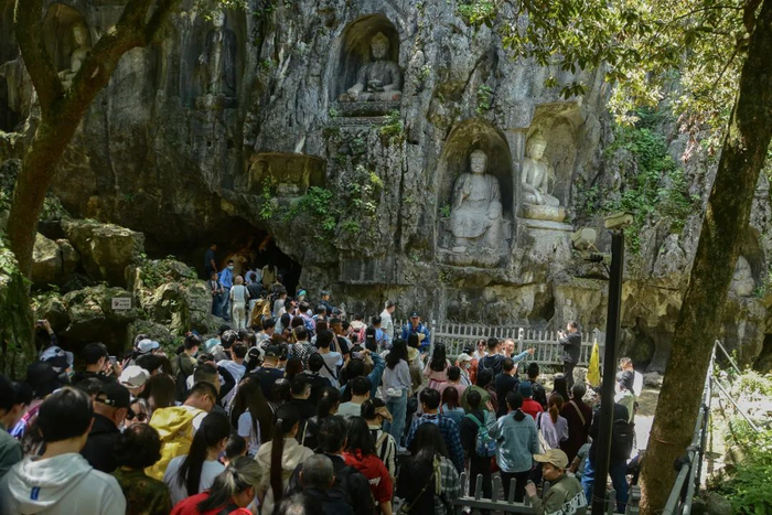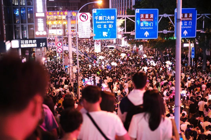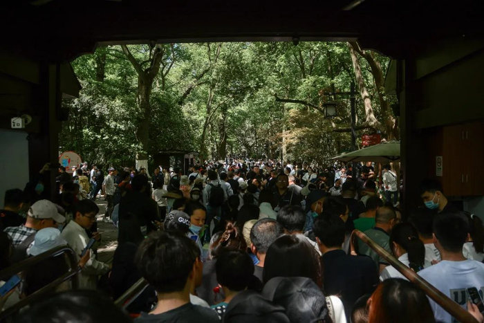 5月1日,重庆,通往洪崖洞景区的游客人山人海。