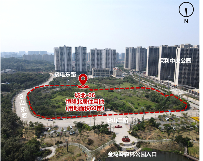 城北恒隆北居住用地,北临金鸡岭森林公园,南临保利中央公园,2公里范围内涵盖阳江市中医医院、共青湖学校、广东两阳中学等教育医疗配套,5分钟可到达中心城区,10分钟便可接驳高速公路。