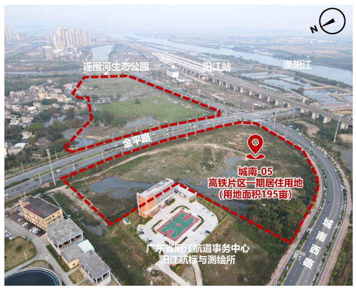 高铁片区一期居住用地,南临江湛铁路阳江站,东临阳江城际空间站、连围河生态公园等,坐拥交通、生态两大核心资源。