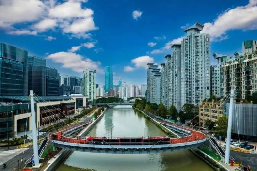 苏州河人文底蕴深厚,其独特的位置使得它成为了金融和文化产业的中心。静安苏河湾与外滩一脉相连、与陆家嘴隔江相望,与南京西路比邻,与内环两翼相呼应,是这座城市商务和文化的滋养之地。这里,有忙碌的商业中心、有历史的记忆、有峥嵘岁月的回响,也有美丽的自然景观。