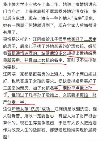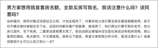 就像上海“洗房”事件,以及“男方家想用我的首套房名额,全款买房写我名”事件。