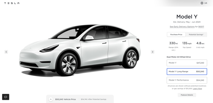 Model Y在美国的价格上涨至47240美元。长续航版上涨至50240美元,此前为43990美元;特斯拉Model Y高性能版上涨至54240美元,此前为53990美元。