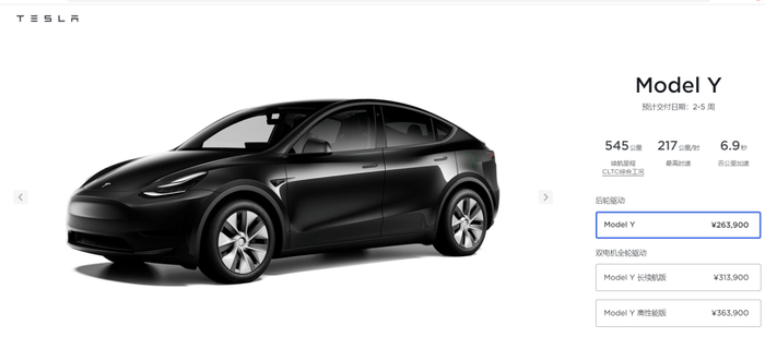 特斯拉Model Y在中国的价格上涨至26.39万元,此前为26.19万元;Model Y长续航版上涨至31.39万元,此前为31.19万元;特斯拉Model Y高性能版上涨至36.39万元,此前为36.19万元。