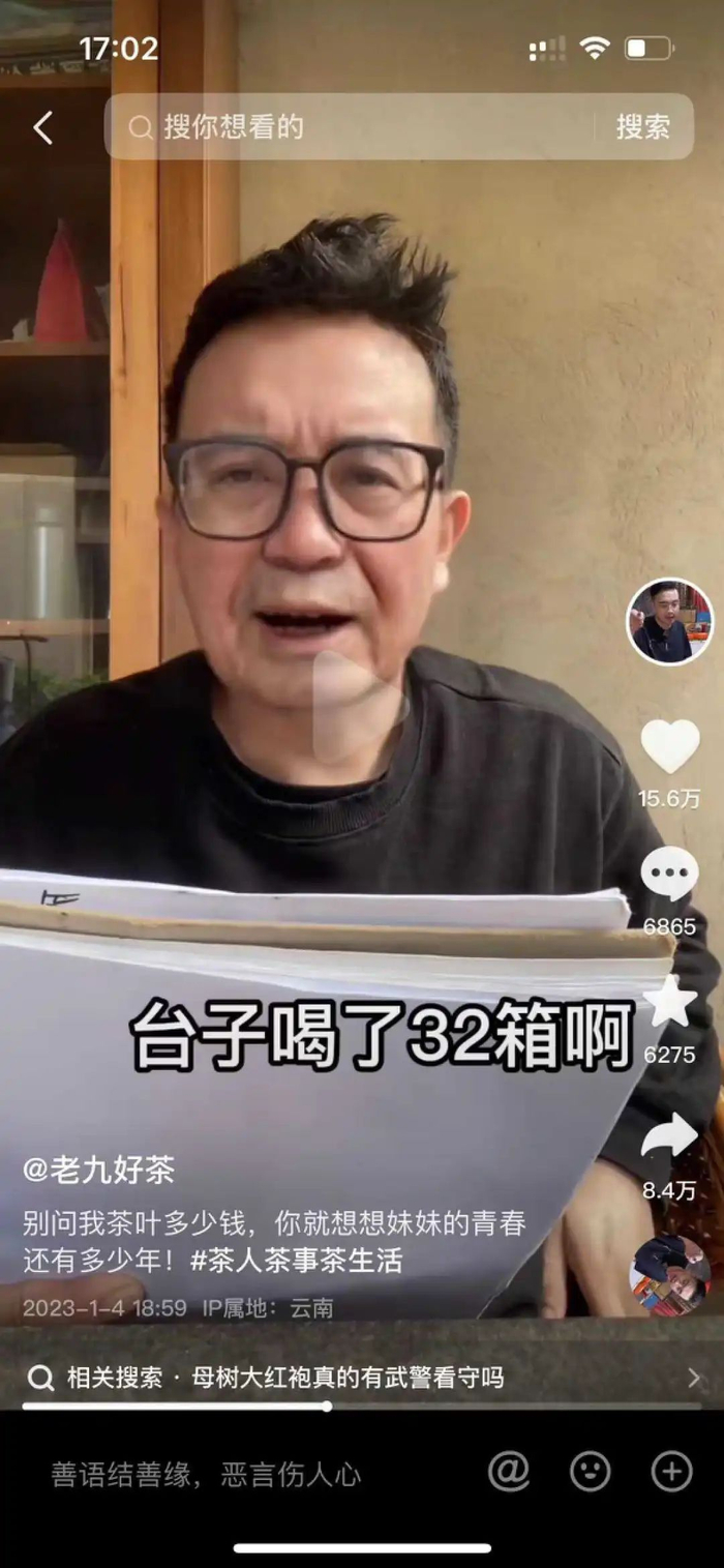 @老九好茶 并不是专业做短视频的创作者,至少在早期其内容还比较粗糙。但是老九拥有自己的线下店铺,做了很多年茶商,对行业的各种门道如数家珍,这也是其能通过短视频内容走红的内在原因。