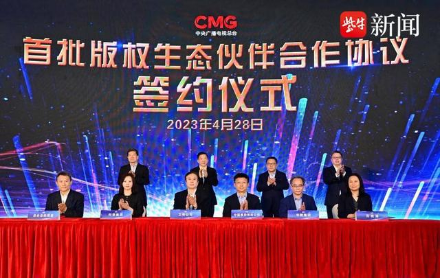 4月28日,中央广播电视总台在上海举办了以“共融共生共创未来”为主题的总台首届版权生态合作大会。中宣部副部长、中央广播电视总台台长慎海雄,上海市委常委、宣传部部长赵嘉鸣出席,并与中国版权协会理事长阎晓宏、总台编务会议成员彭健明共同见证总台首批版权生态伙伴签约。