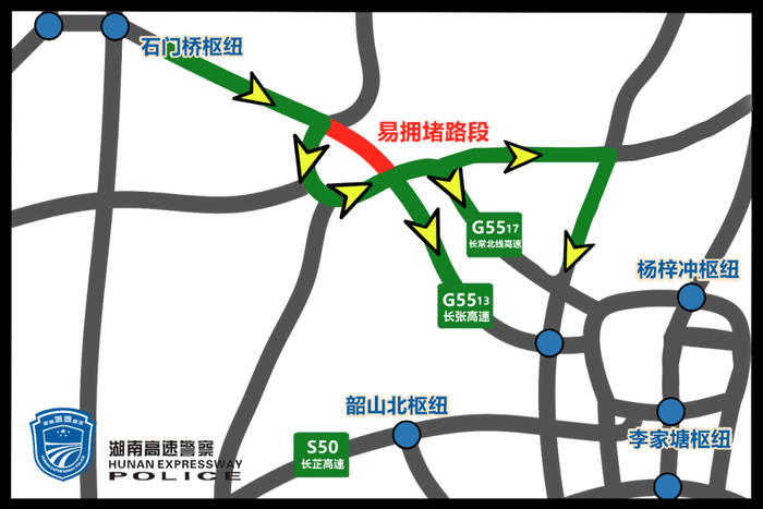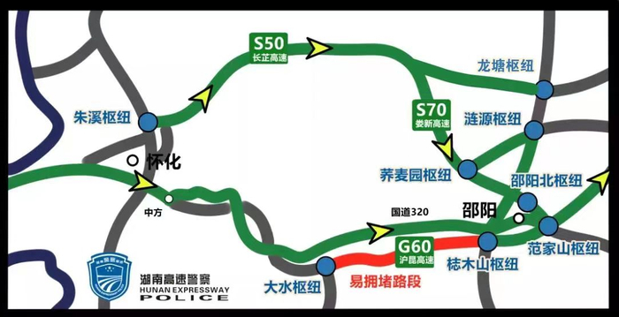 ① 建议公众在出行前关注湖南高速警察微信、微博,留意路况信息和气象信息,尽量错时错峰出行。