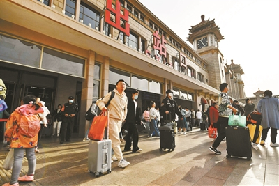 “五一”假期进入倒计时,北京青年报记者从北京市重点站区管委会获悉,北京西站、北京南站自昨天午后起逐步迎来返京高峰,5月3日返程高峰达到峰值。据中国铁路北京局预测,5月3日到京旅客人数预计达到63.2万人。其中,北京南站预计到达22.6万人,北京西站预计到达16.8万人。为迎接返程大客流,本市采取多种交通运力保障方式,协助旅客顺利抵离各火车站。