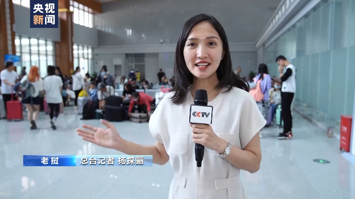 总台记者 杨探骊:我现在是在位于中老边境老挝境内的磨丁火车站,现在在火车站的跨境候车大厅里呢已经是坐满了从中国来的乘客,他们刚刚在磨丁站进行完边检,马上就要搭乘中老铁路国际旅客列车开启老挝之旅了。