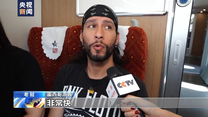 墨西哥游客:非常舒适,非常快。(记者:您是第一次乘坐跨境动车吗?)是的,非常令人震撼。