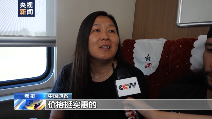 中国游客:价格挺实惠的,然后整个全程也就是八到十个小时左右吧,朝发夕至,在路上也能看到很多当地的风景,我们还挺喜欢坐着火车旅游的这种感觉。