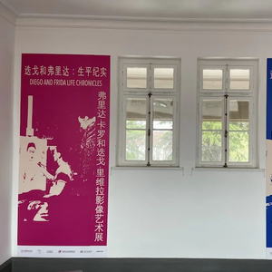 展出的摄影作品来自迭戈·里维拉和弗里达·卡罗工作室博物馆。迭戈和弗里达于1934年开始在此居住和创作。弗里达在这里完成了让她扬名艺术界的《水之赋予我》等作品,于1941年回到蓝房子居住。而迭戈在这里一直居住到1957年11月24日去世,大部分作品在这里完成。