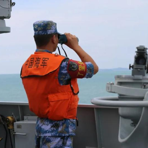▲资料图片:2015年5月,在首次“中新合作”海上军演中,一名中国海军士兵在玉林舰上瞭望。(新华社记者包雪琳摄)