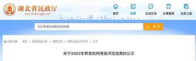 湖北省2022年养老机构等级评定结果公示情况如下: