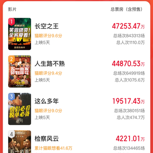 猫眼专业版显示,4月29号,在《长空之王》《人生路不熟》《这么多年》正式上映第二天,三部影片的市场排位就火速发生变化,《人生路不熟》单日票房和累计票房超越《这么多年》,仅次于《长空之王》登上2023五一新片票房榜TOP2。